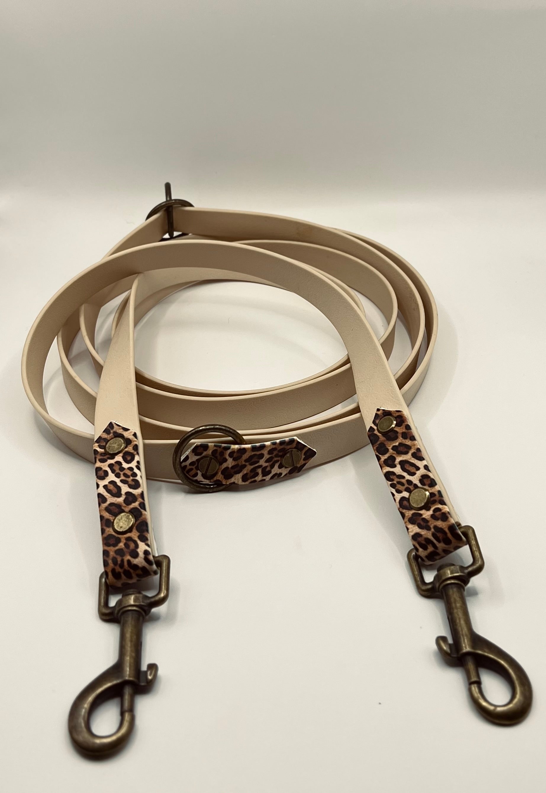 Hundeleine aus BioThane "Leo Special" in der Trendfarbe Beige mit Leo-Muster-Applikationen
